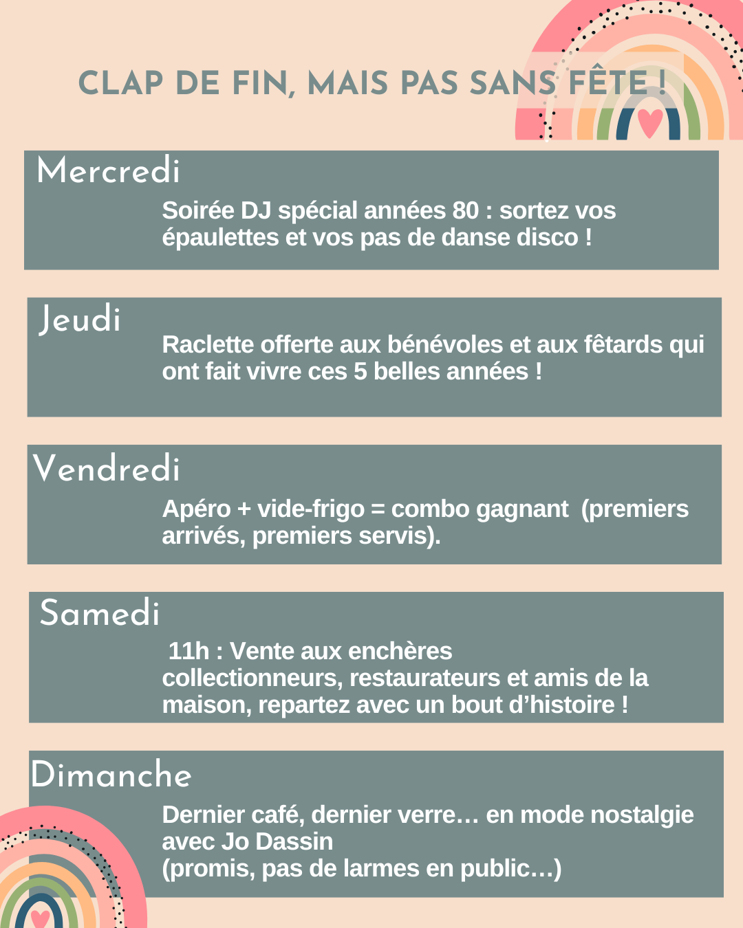 raclette, apéro, enchères et un dernier verre ensemble 🍷.